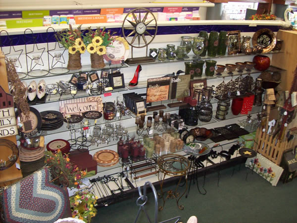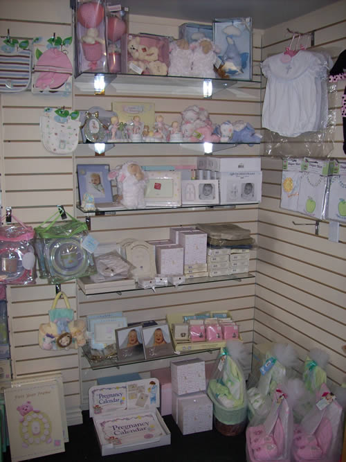 We are well-stocked with a variety of giftware items such as primitive/country décor, handbags, wallets, scarves, beautiful prints and mirrors, candles, china mugs, picture frames, guest books, napkins, WallTalk , and aromatherapy bath products. In our baby section on the upper level, you can choose from keepsake albums, fleece & flannel blankets, nursery décor, christening dresses, gift sets, hand-knit sweaters, frames, and stuffed toys.